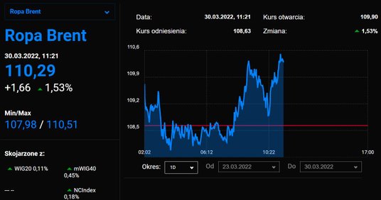 Po dwóch dniach przerwy, kiedy baryłka ropy na światowych giełdach taniała, dziś obserwujemy wzrost notowań. Cena gatunki Brent rośnie o 1,5 proc. do 110 USD.