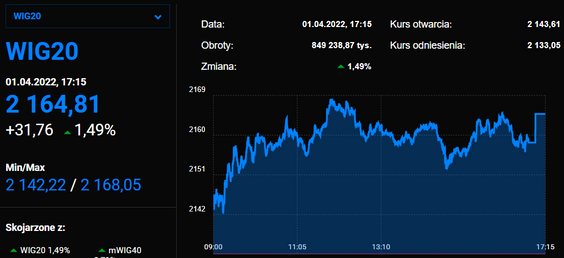 Ostatecznie indeks szerokiego rynku zakończył piątek 1,3 proc. wzrostem. Z kolei WIG20 podskoczył o 1,5 proc., mWIG40 o 0,7 proc, podobnie sWIG80.