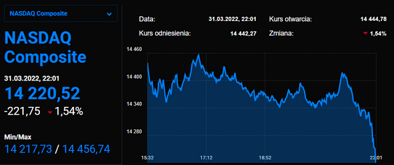 Japoński indeks Nikkei 225 oraz południowokoreański Kospi zakończyły dzień zniżkami o odpowiednio 0,6 i 0,7 proc. Na czerwono świeciły także indeksy amerykańskie. S&P 500, Nasdaq oraz Dow Jones Industrial spadły o odpowiednio 1,6 proc., 1,5 proc. i 1,6 proc. Kontrakty futures dotyczące europejskich indeksów sugerują niedźwiedzie otwarcie w Europie.