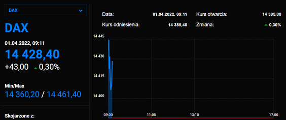 Brytyjski FTSE rośnie o niespełna 0,1 proc., podobnie francuski CAC 40. Pewniejsze zwyżki dotyczą niemieckiego DAX-a, którego kurs wzrasta o 0,3 proc.