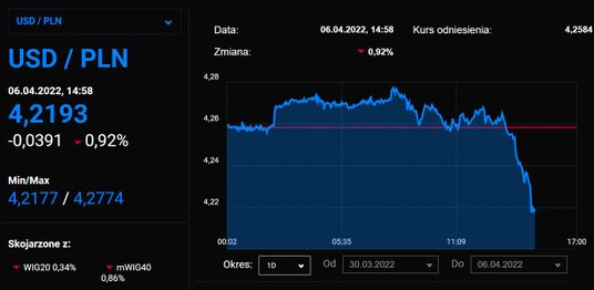 Notowania EUR/PLN i USD/PLN wyraźnie spadają. Umocnienie złotego to efekt podwyżki stóp procentowych przez RPP, powyżej prognoz ekonomistów. Za dolara inwestorzy płacą około 4,21 zł, a za euro nawet 4,60 zł.