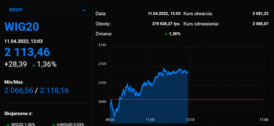 Za nami półmetek sesji w Warszawie. W segmencie dużych spółek rozkręcili się sprzedający, co przekłada się na ponad 1,4 proc. wzrostu WIG20. Motorem zwyżek są mocno drożejące akcje koncernów paliowych PKN Orlen i Lotosu, które kontynuują dobra passę z minionego tygodnia. Na solidnych plusach notowane są także akcje PGE i PZU. Mimo mało obiecującego straty sesji do zwyżek podłączyły się również banki. W tyle zostały małe i średnie spółki, które radzą sobie ze zmiennym szczęściem. Indeksy mWIG40 i sWIG80 notują dużo mniej efektowne zwyżki.