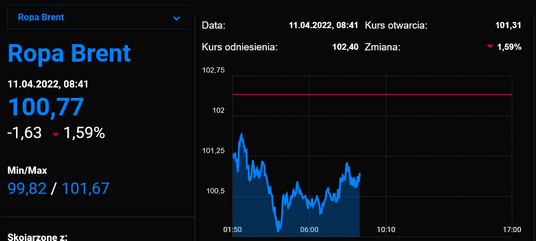 Notowania gatunku Brent zeszły poniżej poziomu 100 dolarów za baryłkę.