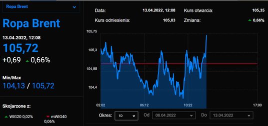 „W sektorze surowców ropa przekroczyła poziom 100 dolarów za baryłkę (+6,1 proc., +34 proc. YTD) po tym, jak prezydent Rosji Władimir Putin zapowiedział kontynuację wojny na Ukrainie. Wzrosty kontynuował również węgiel energetyczny i koksujący. Gaz stabilnie. Nastroje o poranku środowej sesji są neutralne” – napisali analitycy DM BDM.
