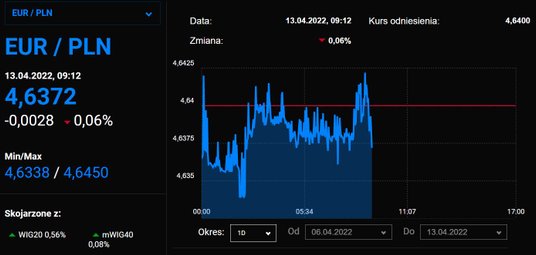 Narodowy Bank Polski podał, że deficyt w obrotach bieżących w lutym 2022 r. wyniósł 2,87 mld euro. Średnia ekonomistów spodziewała się 2 mld euro deficytu. Eksport wzrósł w lutym o 10,4 proc. rok do roku, a import wzrósł o 21,6 proc. rok do roku.
