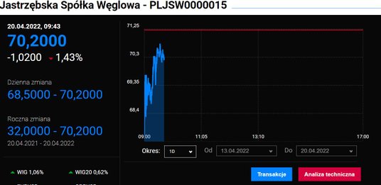 Jastrzębska Spółka Węglowa (JSW) utworzyła dodatkowy odpis aktualizujący wartość aktywów trwałych...