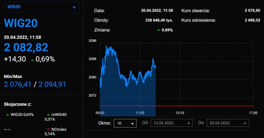 „Największe indeksy w USA zamknęły się mocno na plusie mimo rosnących rentowności długu. Dow Jones Industrial zakończył sesję 1,5 proc. na plusie, S&P 500 zyskało 1,6 proc., a Nasdaq wzrósł o 2,2 proc. Skutki presji cenowej, wojna na Ukrainie oraz kiepskie perspektywy gospodarcze Chin w obliczu lockdownów nadal kształtują nastroje inwestorów na całym świecie” – tłumaczą analitycy DM BDM.