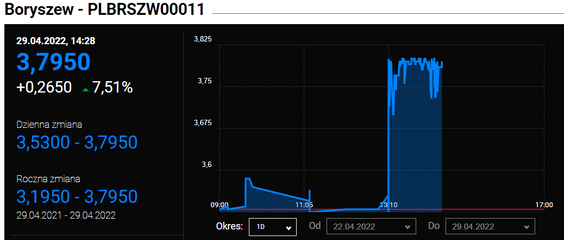 Zarząd przemysłowego Boryszewa rekomenduje wypłatę 0,92 zł na akcję jako dywidendy. Oznacza to stopę dywidendy na poziomie 24,6 proc. Cena akcji rośnie po południu o ponad 7,5 proc.