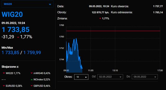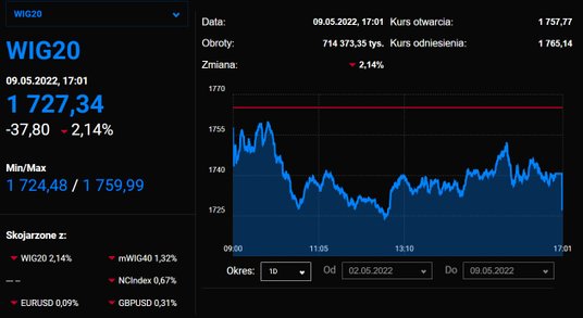 WIG20 najniżej od 2020 r., indeks S&P 500 najniżej od maja 2021 r., ceny ropy w pobliżu 110 USD z...