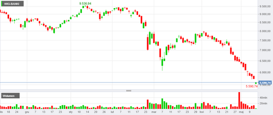 Po około 90 minutach czwartkowej sesji WIG-Banki traci około 2,6 proc., powiększając tegoroczny spadek do około 35 proc. Jednocześnie WIG20 zniżkuje około 2,7 proc.