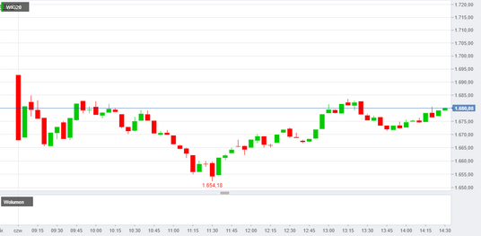 Jak na razie WIG20 zaliczył dno tuż przed południem, zniżkując poniżej 1660 pkt. Obecnie spadek ogranicza się do 2,25 proc., a WIG20 sięga 1679 pkt. Byki jednak mogą czuć nadzieję w związku ze zbliżaniem się indeksu do dzisiejszego poziomu otwarcia.