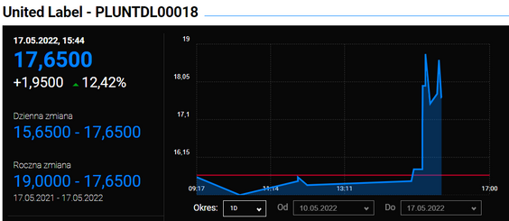 Producent gier CI Games wzywa do sprzedaży 275 tys. akcji United Label stanowiących 21,6 proc. wszystkich walorów po cenie 18,02 zł za walor. Intencją wzywającego jest zdjęcie firmy z NewConnect.