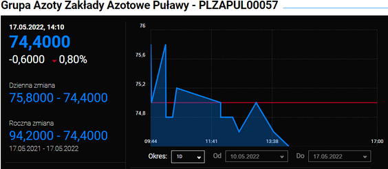 Zarząd producenta m.in. nawozów rekomenduje wypłatę 126,2 mln zł dywidendy, czyli 6,6 zł na akcję. Oznacza to stopę dywidendy na poziomie 8,9 proc.