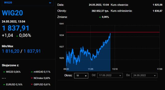 Znów psują się nastroje na warszawskiej giełdzie. WIG20 wraca pod kreskę. Na razie traci 0,3 proc. ale perspektywa spadkowego początku dnia na Wall Street nie napawa optymizmem.