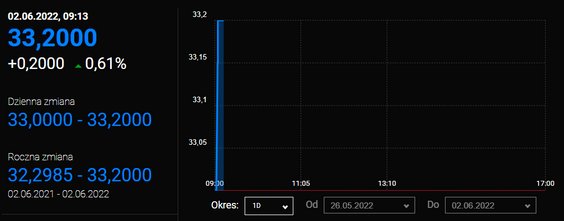 O poranku rodzima waluta minimalnie zyskuje względem euro jak i dolara. Za walutę Wspólnoty płacono 4,58 zł, a dolara - 4,3 zł. Cena baryłki ropy WTI zmniejszała się o niemal 1,7 proc., jednak nadal utrzymuje się powyżej poziomu 113 dolarów. Poranek był też dobry dla złota - za uncję trzeba zapłacić ponad 1 850 dolarów. Z kolei notowania bitcoina rosły o 0,8 proc., utrzymując się jednak poniżej poziomu 30 tys. dolarów.