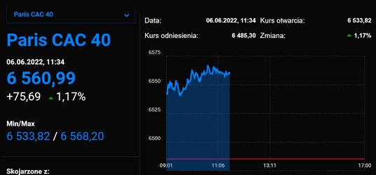 Na zachodnioeuropejskich rynkach akcji więcej do powiedzenia mają kupujący, co przekłada się na wzrosty głównych indeksów. Główny wskaźnik giełdy we Frankfurcie DAX zyskuje ok. 1 proc., paryski CAC40 rośnie o prawie 1,2 proc. proc., a londyński FTSE100 poszedł w górę o prawie 1,4 proc. Inwestorów pozytywnie nastawiły wzrosty w Azji będące efektem znoszenia blokad antycovidowych w Chinach.