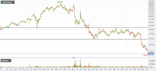 Akcje producenta gier zniżkują coraz mocniej po informacji o wycenie BofA na 55 zł. Po południu kurs sięga 94 zł, co oznacza ponad 9-proc. spadek.