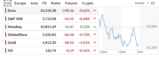 Dzisiaj na amerykańskim rynku akcji znów przewagę mają sprzedający. Spadki notują Dow Jones oraz S&P 500, są one jednak umiarkowane i wynoszą około pół procent. Na minimalnym plusie jest natomiast indeks Nasdaq. Na rynku nadal dominują obawy o to, jak zachowa się jutro Fed, a konkretnie, jak mocno podniesie stopy procentowe.