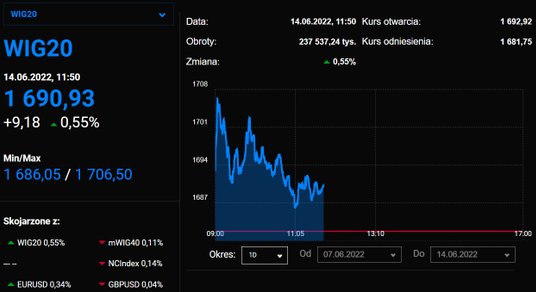 Indeks największych spółek naszego parkietu wciąż utrzymuje się nad kreską. Skala zwyżek wyraźnie jednak wyhamowała. W pierwszych minutach wskaźnik zyskiwał ponad 1 proc. Teraz jest 0,5 proc. na plusie. Kolejny atak podaży może właściwie przyjść w każdej chwili więc inwestorzy powinni zachować czujność.