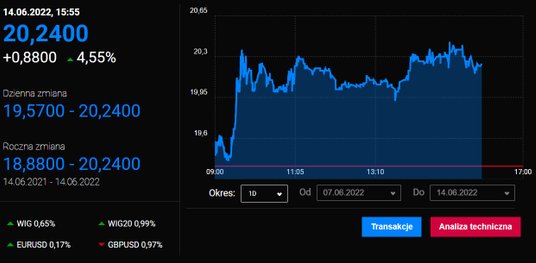 Akcje firmy XTB zyskują dzisiaj na wartości prawie 5 proc. Od początku roku zyskały one blisko 30 proc. Wzrost napędza m.in. podwyższona zmienność rynkowa, która przekłada się na większa aktywność klientów i tym samym większe przychody spółki.