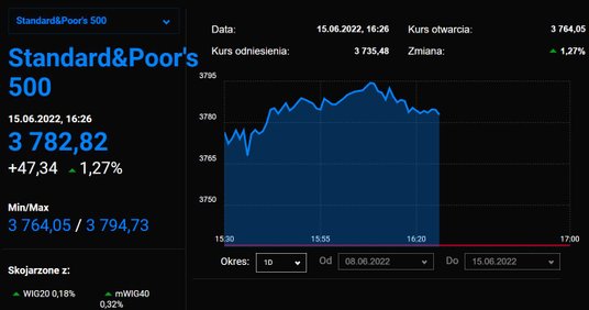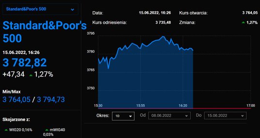 Choć bezpośrednio po decyzji Fedu zwyżki na Wall Street wyhamowały, to w kolejnych kwadransach sesji indeksy powiększyły dorobek. Ostatecznie z trzech głównych indeksów w USA najwięcej, 2,5 proc., zyskał dzisiaj Nasdaq. Dow Jones zamknął się na 1-proc. plusie, a S&P 500 wzrósł o 1,46 proc. Inwestorów uspokoiły słowa Jerome'a Powella, szefa Rezerwy Federalnej, z których wynika, że choć bank będzie toczył walkę z inflacją, to podwyżki stóp o dużej skali będą rzadkością. Część ekonomistów, m.in. z Barclaysa, uznała, że w lipcu Fed może wrócić do podwyżek o 0,5 pkt proc. Takie podejście Fedu może ochronić gospodarkę przed recesją lub co najmniej gwałtownym schłodzeniem.
