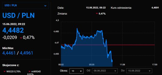 Najważniejszym wydarzeniem na rynkach finansowych jest dziś decyzja Fedu. Dolar lekko osłabia się wobec euro i innych walut. Korzysta na tym złoty. Notowania USD/PLN spadają o blisko 0,5 proc., do poniżej 4,45 zł.