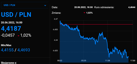 Po burzliwym minionym tygodniu polska waluta wróciła do łask inwestorów, co przełożyło się na jej wyraźne umocnienie względem najważniejszych walut. Za euro obecnie trzeba płacić ok. 4,65 zł, frank szwajcarski kosztuje prawie 4,57 zł, a dolar wyceniany jest nieco powyżej 4,41 zł.
