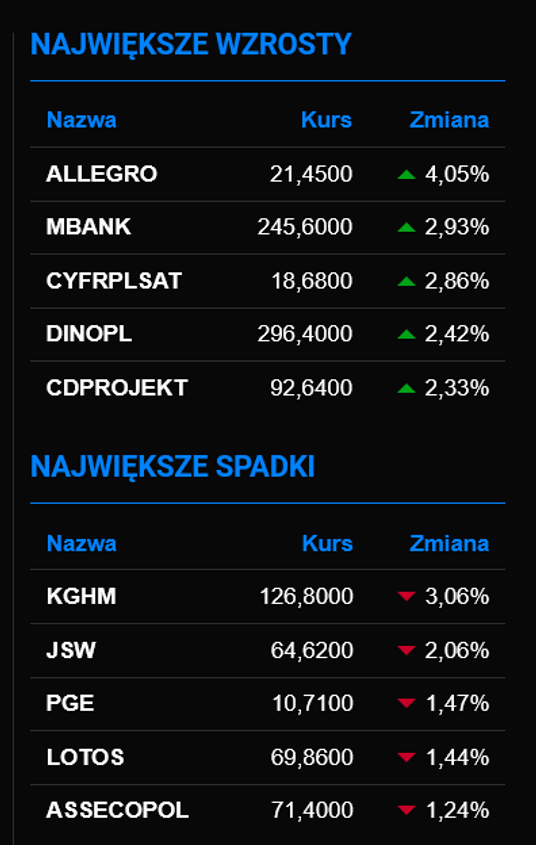 Topnieje przewaga głównych indeksów w Warszawie. Motorem poniedziałkowego odbicia są drożejące akcje największych banków, a także papiery Allegro, odrabiające straty już trzecią sesję z rzędu. Przeciwwagę stanowią dla nich mocno przecenione walory spółek wydobywczych KGHM i JSW.