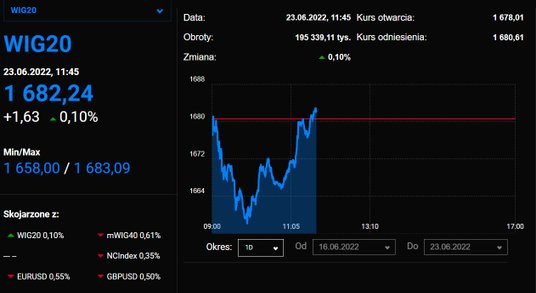 Połowa sesja za nami. WIG20 po ciężkich chwilach złapał oddech i zyskuje 0,5 proc. Po rozczarowaniach z początku dnia poprawia się też sytuacja na innych parkietach. DAX traci już tylko 0,3 proc. chociaż też był ponad 1 proc. pod kreską. Na plusie jest już francuski CAC40, który rośnie 0,4 proc. Liderem wzrostów jest rosyjski RTS. Rośnie ponad 1 proc.