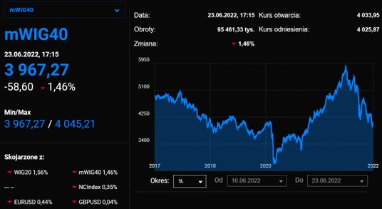 Problemy na naszym rynku mają nie tylko największe spółki, ale także i średnie firmy. mWIG40 stracił dzisiaj prawie 1,5 proc. i jest poniżej 4000 pkt. Sytuacja jest napięta. Testowany jest dołem z początku miesiąca. Jeśli zostanie on przełamany otwiera się droga do dalszych spadków.