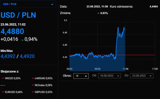Trwa przecena naszej waluty. Po wczorajszym wyraźnym osłabieniu dzisiaj mamy kontynuację tego ruchu. Dolar drożeje o około 0,9 proc. i kosztuje 4,48 zł. Euro zyskuje 0,2 proc. i trzeba za nie płacić 4,71 zł.
