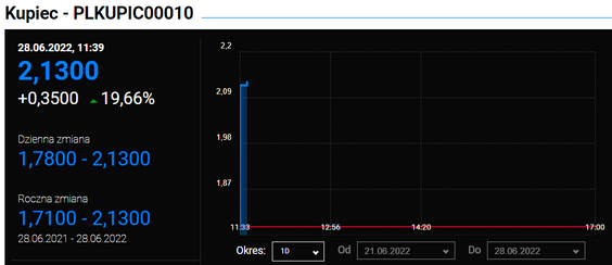 Walne zgromadzenie firmy świadczącej usługi transportowo-spedycyjne uchwaliło wypłatę 1,3 mln zł dywidendy, czyli 0,38 zł na akcję. Oznacza to stopę 17,8 proc. Cena akcji rosła po południu o niemal 20 proc.