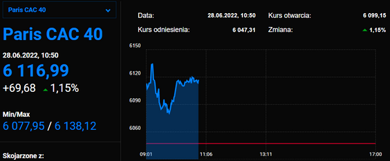Niemiecki DAX zyskuje przed południem 0,8 proc., francuski CAC 40 1,2 proc., a brytyjski FTSE 100 - 1,1 proc. Na warszawskim parkiecie również dominacja byków. WIG zyskuje 1,5 proc., a WIG20 - 1,7 proc.