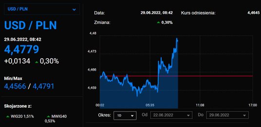 Na początku dzisiejszej sesji na rynkach walutowych widzimy umocnienie dolara. Notowania pary EUR/USD spadają o 0,3 proc. W takim otoczeniu pod presją jest złoty, który osłabia się względem dolara o 0,3 proc., do około 4,478 zł.