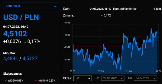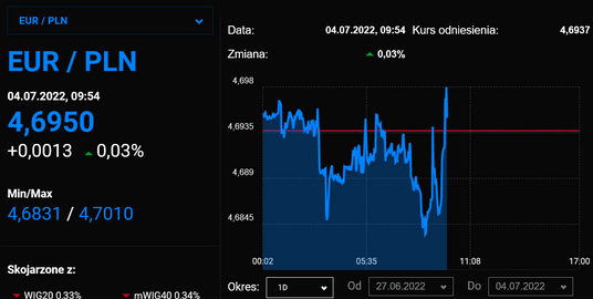 Inwestorzy w dalszym ciągu są sceptycznie nastawieni do złotego, co przekłada się na jego słabość względem najważniejszych walut. Za euro trzeba już płacić prawie 4,71 zł, frank szwajcarski kosztuje ok. 4,69 zł, a dolar wyceniany jest po ok. 4,51 zł.