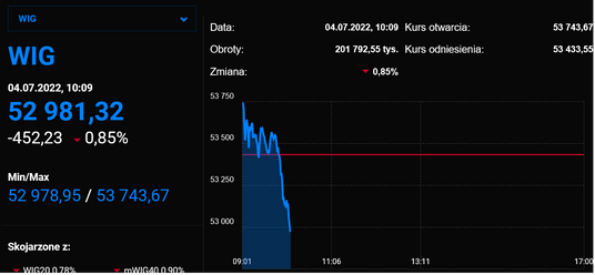 Odbicie indeksów w Warszawie