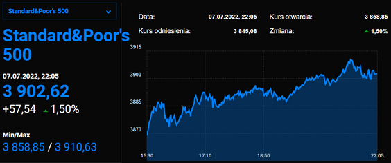 Liczba etatów w amerykańskim sektorze pozarolniczym wzrosła w czerwcu o 372 tys., po tym jak w maju zwiększyła się o 384 tys. Średnio prognozowano, że przybędzie ich 270 tys. Stopa bezrobocia utrzymała się na poziomie 3,6 proc. Średnia płaca godzinowa wzrosła o 5,1 proc. rok do roku, podczas gdy spodziewano się jej wzrostu o 5 proc.