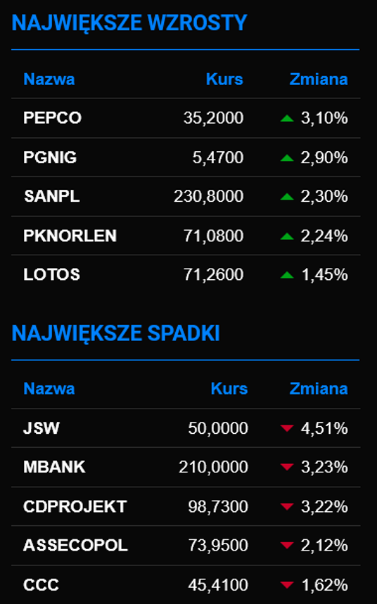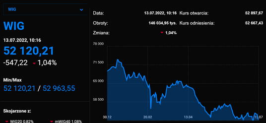 Główne indeksy warszawskiej giełdy pogłębiają spadki podążając śladem zagranicznych rynków akcji. WIG20 traci już nieco ponad 1 proc., a WIG zniżkuje o ok. 0,9 proc. Warto zauważyć, że oba wskaźniki są bardzo blisko tegorocznych dołków.