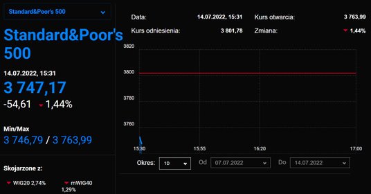 Początkowo wszystkie trzy główne indeksy giełdowe w USA gwałtownie spadły po informacji o zyskach za drugi kwartał z JPMorgan i Morgan Stanley. Oba banki odnotowały spadek zysków i ostrzegały przed zbliżającym się spowolnieniem gospodarczym. Straty na Wall Street zmniejszyły się w miarę trwania sesji.