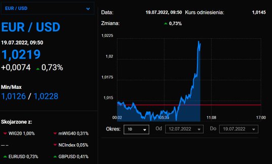 Kolejny dzień korekty na głównej parze walutowej. Euro umacnia się wobec dolara o 0,7 proc. i główna para walutowa jest dzisiaj przy poziomie 1,022.