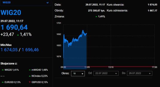 Pierwsza cześć sesji dla byków. WIG20 powyżej 1700 pkt