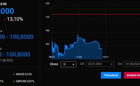Pod koniec ubiegłego tygodnia ropa WTI osiągnęła poziom 100 USD za baryłkę. Dzisiaj jednak mamy mocniejszy ruch spadkowy. Odmiana WTI spada już o ponad 3 proc. i baryłka jest wyceniana na nieco ponad 95 USD.