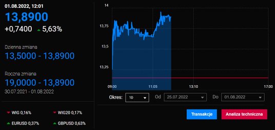 Akcje firmy PKP Cargo wyraźnie złapały w ostatnim czasie wiatr w żagle. W ciągu ostatniego miesiąca podrożały one o ponad 25 proc. Dzisiaj z kolei drożeją o ponad 6 proc. Pomaga m.in. perspektywy większych przewozów węgla.