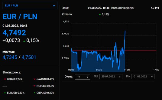 Pojawiają się rysy na notowaniach złotego. W stosunku do euro traci on około 0,2 proc. Nie pomaga słaby odczyt PMI dla przemysłu w Polsce, a także pogarszające się nastroje na GPW.