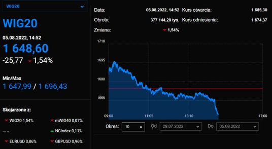 Miło było tylko na początku. Piątek ostatecznie przyniósł przecenę na GPW. Gwoździem do trumny okazały się lepsze od oczekiwań dane z amerykańskiego rynku pracy, które dają Rezerwie Federalnej przestrzeń do dalszych podwyżek stóp procentowych. WIG20 zakończył notowania na poziomie 1652 pkt, a przecież jeszcze rano wydawało się, że jest w stanie powalczyć o 1700 pkt.