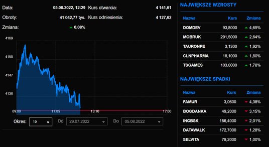 Mieliśmy udane otwarcie notowań, ale niestety sytuacja na GPW zaczyna się pogarszać. WIG20 wykasował już cały poranny ruch i znalazł się pod kreską. Traci 0,2 proc. O ile w pierwszych fragmentach wsparciem był PKN Orlen, tak teraz jest on ciężarem rynku. Dodatkowo ciągnie on także w dół PGNiG. Akcje obu spółek tracą ponad 2 proc.