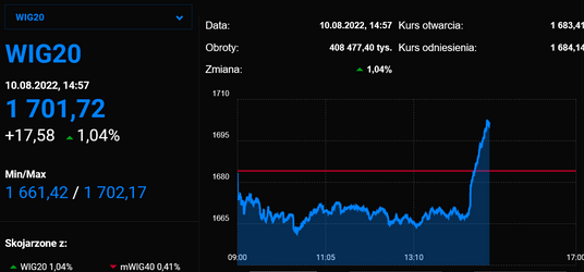 Optymizm wywołany niższą od oczekiwanej inflacją w USA dotarł także do Warszawy, przekładając się na wzmożone zakupy akcji. Dzięki temu główne indeksy nie tylko sprawnie odrobiły straty, ale i wypracowały całkiem pokaźną przewagę. WIG20 jest juz ponad 1 proc. na plusie.
