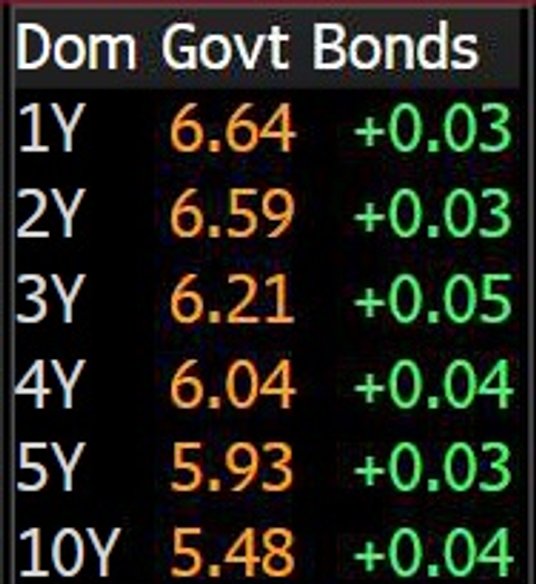 Dochodowości polskich obligacji skarbowych rosną dziś po kilka punktów bazowych.