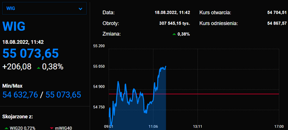 Indeks szerokiego rynku zyskuje obecnie 0,4 proc. ciągnięty w górę najmocniej przez WIG20 rosnący o 0,7 proc. Na europejskich parkietach również widać niewielką przewagę byków. Niemiecki DAX zyskuje 0,7 proc., a francuski CAC - 0,5 proc.