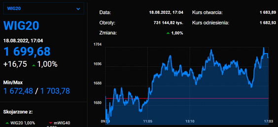 Rodzima waluta traci zarówno względem dolara, jak i euro. Z kolei po publikacjach notatek z ostatniego posiedzenia Fedu sugerujących dalszą, znaczącą walkę z wysoką inflacją, dolar mocno zyskał względem euro, co spowodowało, że za euro płacono rano mniej niż 1,02 dolara. Z kolei cena baryłki ropy WTI spadała poniżej 88 dolarów. Cena za uncję złota utrzymywała się na poziomie powyżej 1,7 tys. dolarów za uncję. Bitcoin rósł o 0,2 proc. do ponad 23,3 tys. dolarów. Kontrakty futures sugerują zielone otwarcie w Europie.